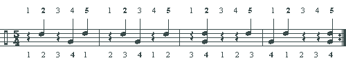 below represent a five-note grouping. Notice the bold numbers: on the top,